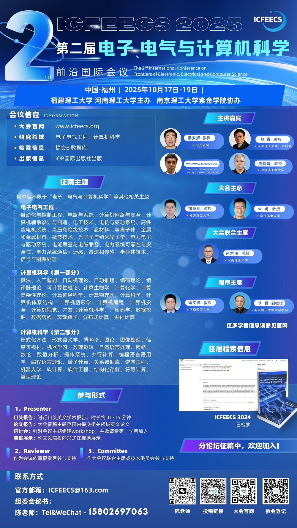 会议名称:第二届电子、电气与计算机科学前沿国际会议(ICFEECS 2025)