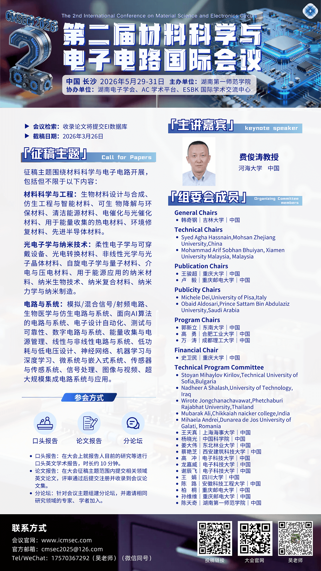 会议名称:第二届材料科学与电子电路国际会议(CMSEC 2026)