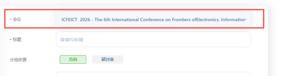 https://ocs.academicenter.com/submission/stepone?conf_id=1965622817060241408,登录后选择 ‘ICFEICT 2026’;