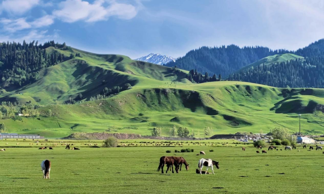 伊犁,新疆西北的塞外江南。伊犁河滋养着广袤草原,霍城薰衣草织就紫色花海,那拉提草原牛羊漫坡,雪山云杉相映成画。古丝路的驼铃犹在耳畔,多民族风情交融,惠远古城藏着戍边往事,每一寸土地都写满诗意与苍茫。