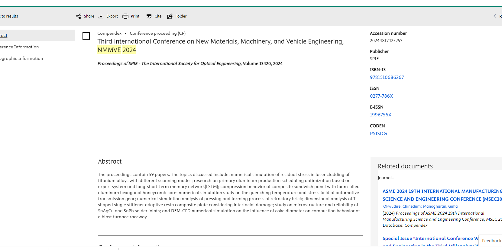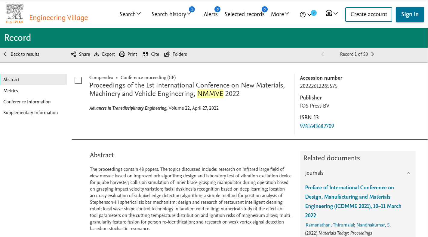 会议名称:第五届新材料、机械与运载工程国际会议
