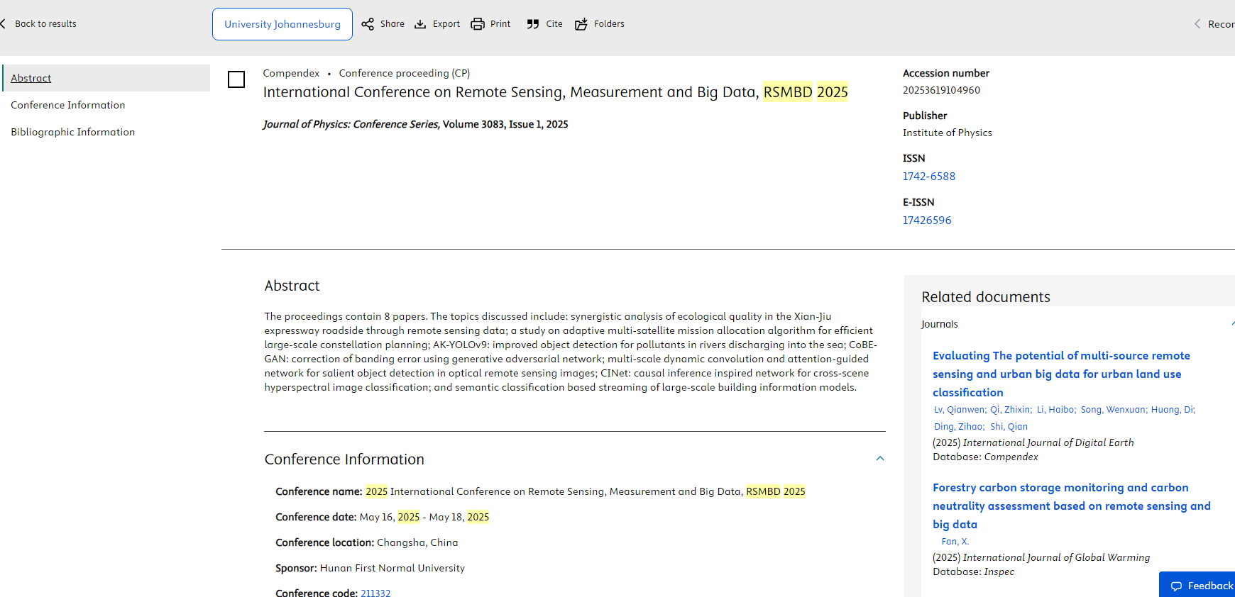 遥感、测量与大数据国际会议(RSMBD 2026)定于2026年5月15日-17日在湖南长沙隆重召开。会议录用并正式发表的论文,将全文收录于RSMBD 2026会议论文集,同步提交至EI Compendex数据库进行检索,为相关研究成果提供权威的学术展示与传播平台。