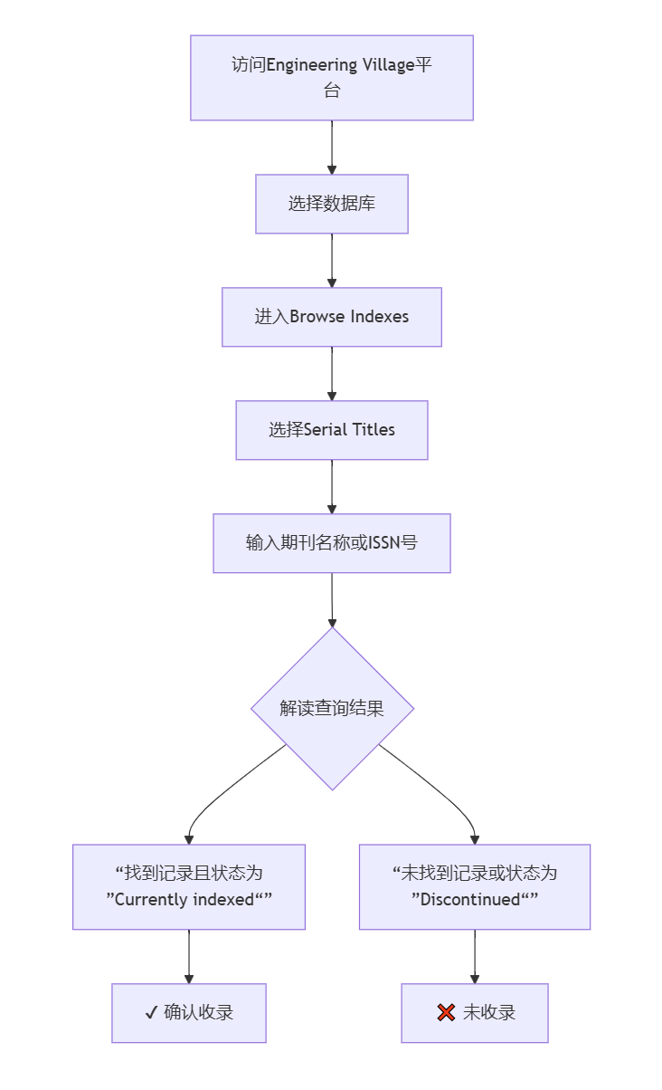要权威地验证一个期刊是否被EI Compendex收录,最可靠的方法是直接通过其官方平台 Engineering Village 进行查询。下面的流程图清晰地展示了从访问平台到最终确认的完整步骤,你可以参照执行。