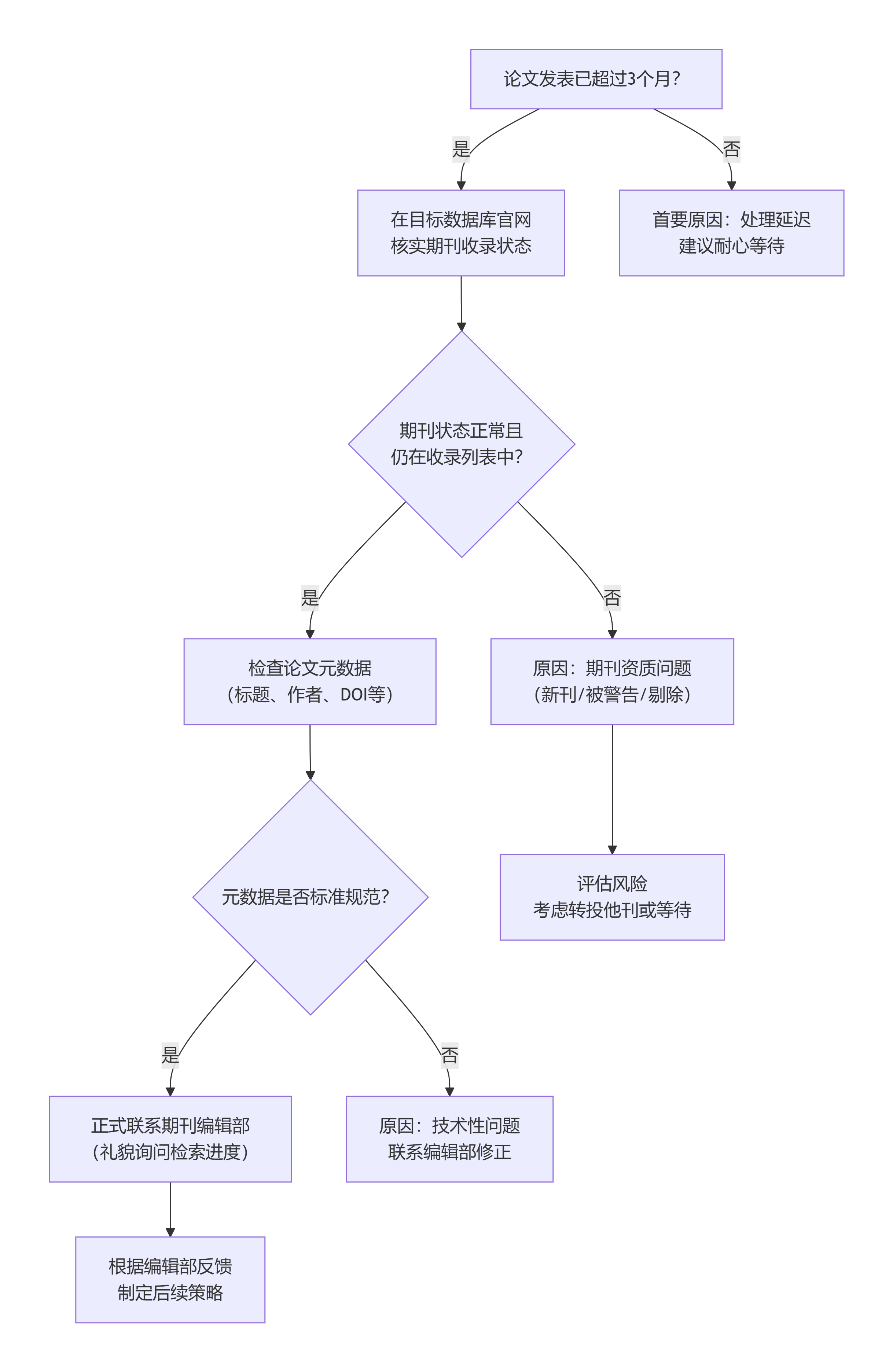 论文未被检索,在多数情况下是流程性、技术性或时间性问题,而非您论文质量的直接反映。请先不要过度焦虑。