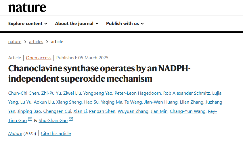 该研究相关成果以“Chanoclavine synthase operates by an NADPH independent superoxide mechanism"为题3月6日在国际顶级期刊《自然》(Nature)上在线发表。这是该校首篇作为第一完成单位在Nature上发表的论文,实现了重大突破。